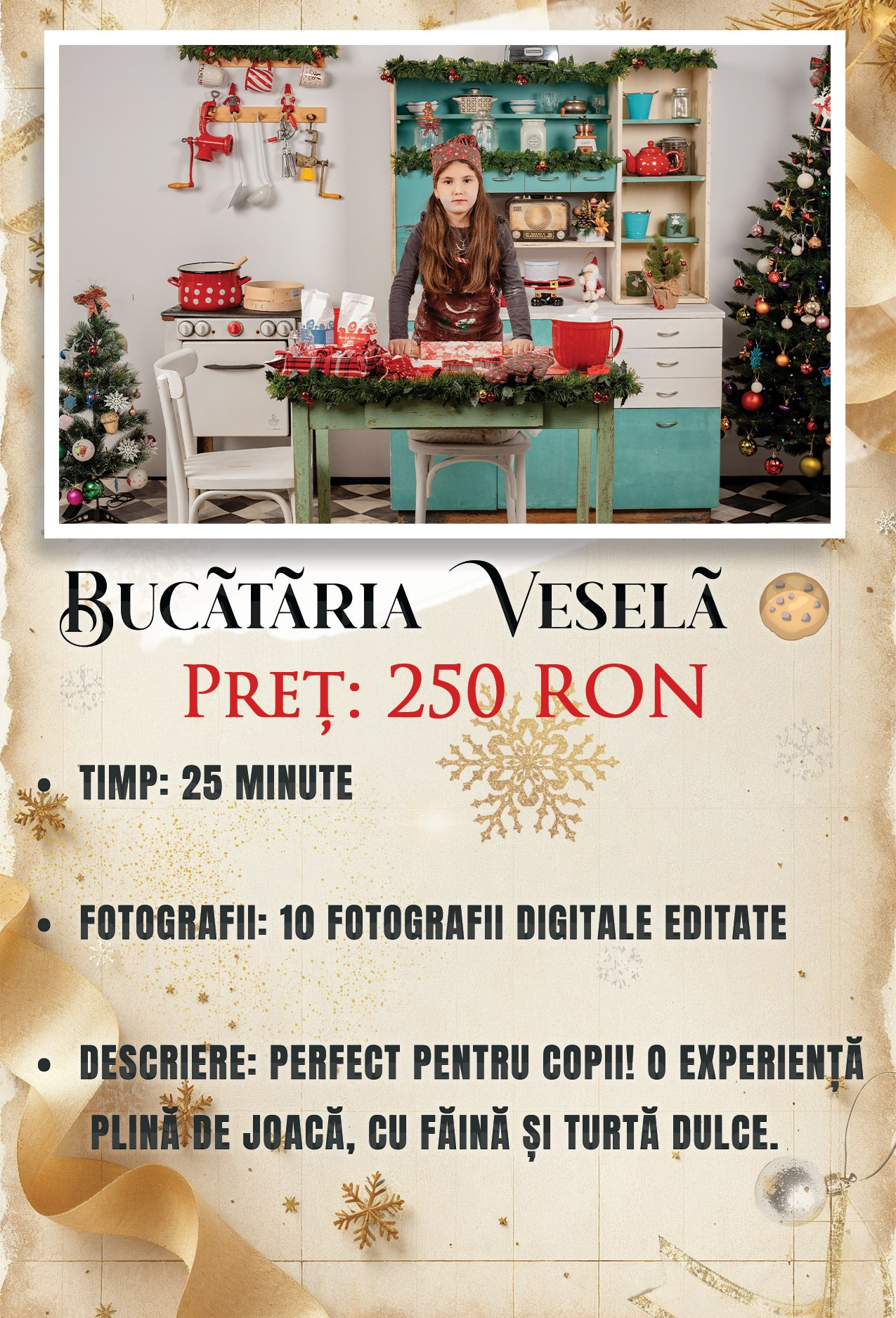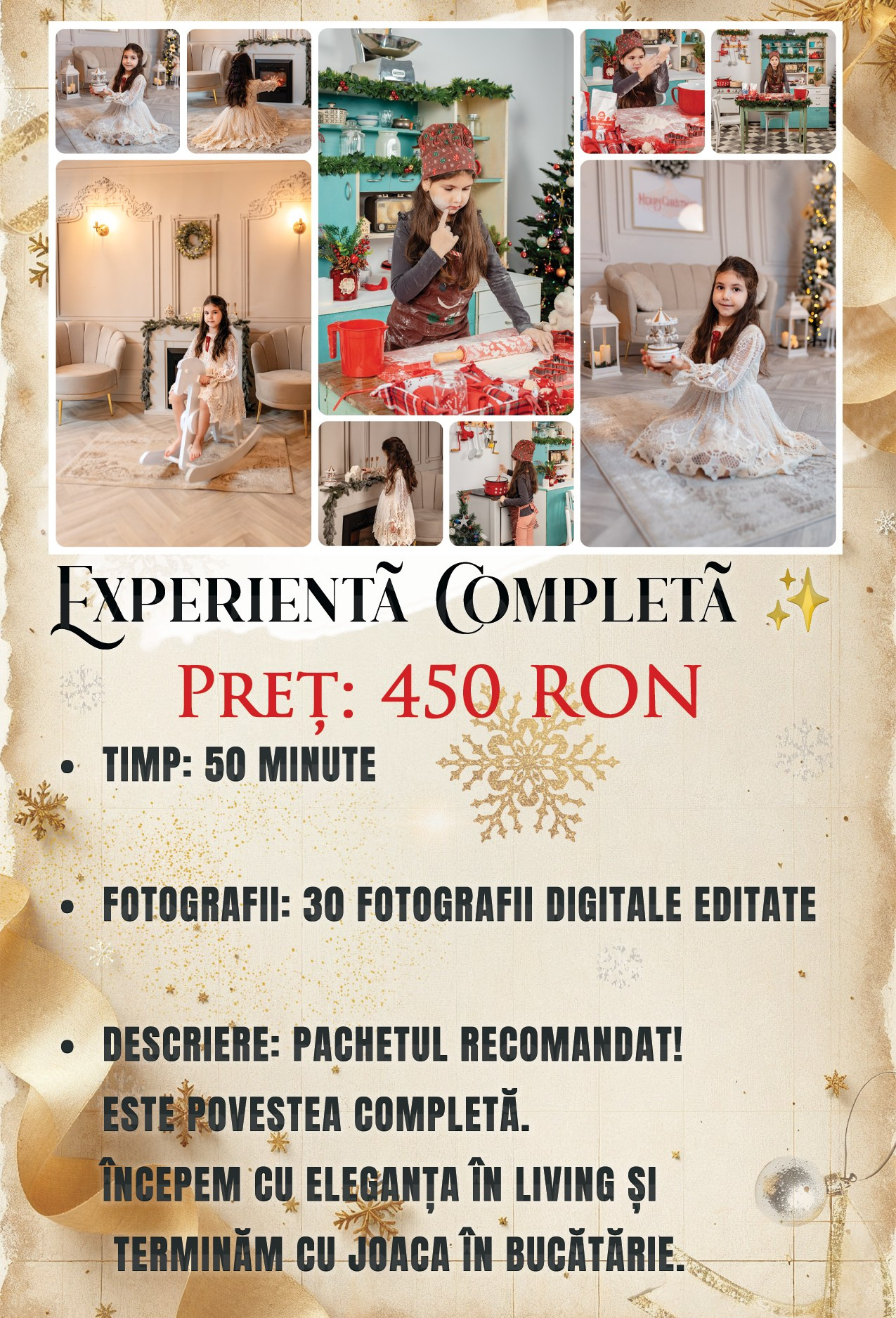 Anul acesta, am investit tot sufletul pentru a crea nu doar decoruri, ci lumi. O lume elegantă, de vis 🛋️, și o lume plină de joacă autentică 🍪.Am pregătit o experiență completă, nu doar o ședință foto. Povestea voastră de Crăciun începe aici.”